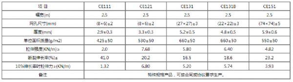 土工網: 是高密度聚乙烯經擠壓成方形、菱形、六邊形網格狀的產品,具有一定的拉伸強度和耐久性、化學穩(wěn)定性、耐候性、耐腐蝕等性能。因此可廣泛應用于巖土工程的諸多方面。該產品規(guī)格齊全,在此,僅介紹CE131和CE151兩種用途最廣的土工網。 用途: CE131 1. 用于路基補強,使粒狀填料與網格互相鎖合在一起,形成穩(wěn)定的平面,防止填料下陷,并可將垂直載苛分散,地理條件惡劣地區(qū)可采用多層補強; 2. 鋪于堤壩及路基填土中能增加它的穩(wěn)定性,減少占地面積; 3. 用于路面補強,使網格與路面材料摻合在一起,可以有效地分散傳遞載荷,防止路面裂紋; 4. 可承受一定沖擊載荷; 5. 可承受較大的交變載荷; 6. 縮短工程建設周期; 7. 在惡劣環(huán)境條件下,也能施工; 8. 可防止翻漿造成的路面沉陷和裂紋; 9. 可減少路面材料用量; 10. 加快施工速度。 CE151 1. 堤壩及巖石表面的防護。以防止侵蝕作用,避免產生塌方、巖石松動和水土流失; 2. 河、道岸治理工程,因具有柔韌性強、滲透性好、不受海水侵蝕,并能吸收波浪沖擊能量,故可做成矩形、方形或管狀石 籠,直接安裝在水下,起導流和防護作用,施工時不需要費用昂貴的潛水作業(yè); 3. 隧洞周壁的噴錨防護網。 產品規(guī)格及性能參數(shù):